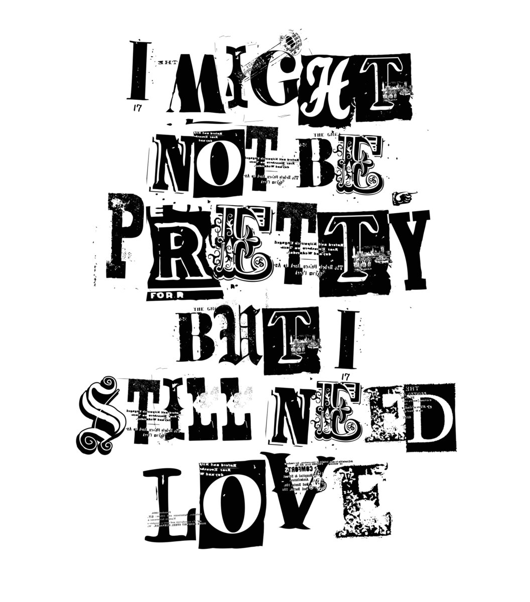 This White Tee has the lyrics from The Recks song 'I Might Not Be Pretty' (But I Still Need Love) emblazoned across the front in black.